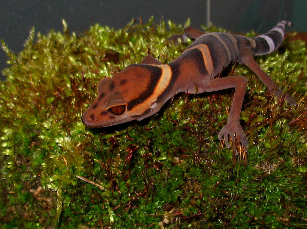 Augenfarbe ist typisch rot für die Gattung Goniurosaurus.